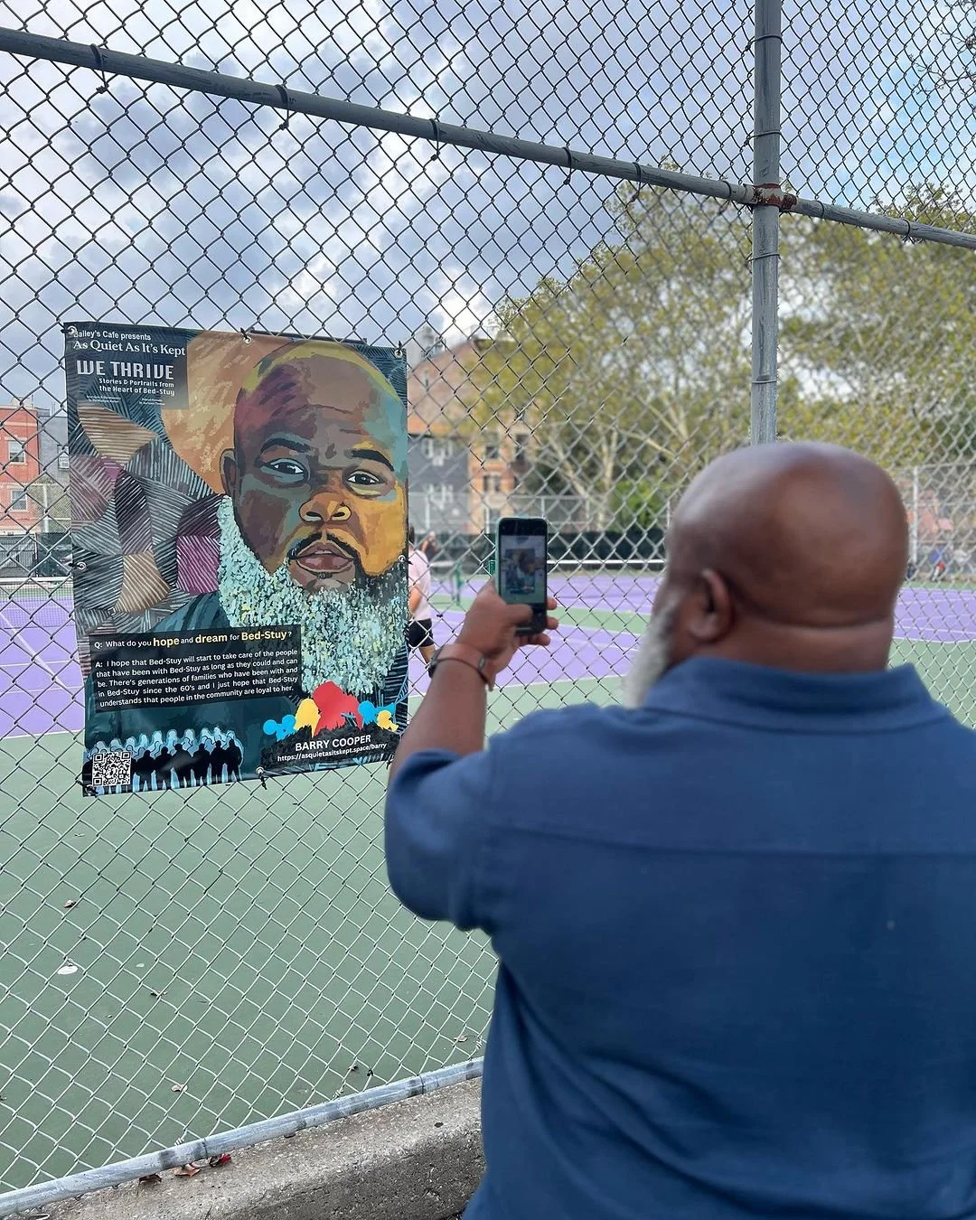 As you walk through Bed Stuy you may see some new public art installations. We’re proud to see Barry’s portrait and sentiments included in a series called As Quiet As It’s Kept, We Thrive: Stories & Portraits from the Heart of Bed Stuy. This multi-year project is coordinated by Bailey’s Cafe, a vibrant non-profit community space that delivers intergenerational arts initiatives from its home on Malcolm X Blvd.